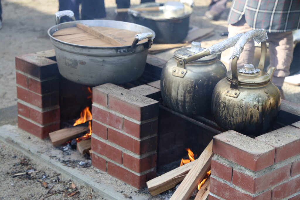 かまどベンチを活用した豚汁(ぶたじる)調理
