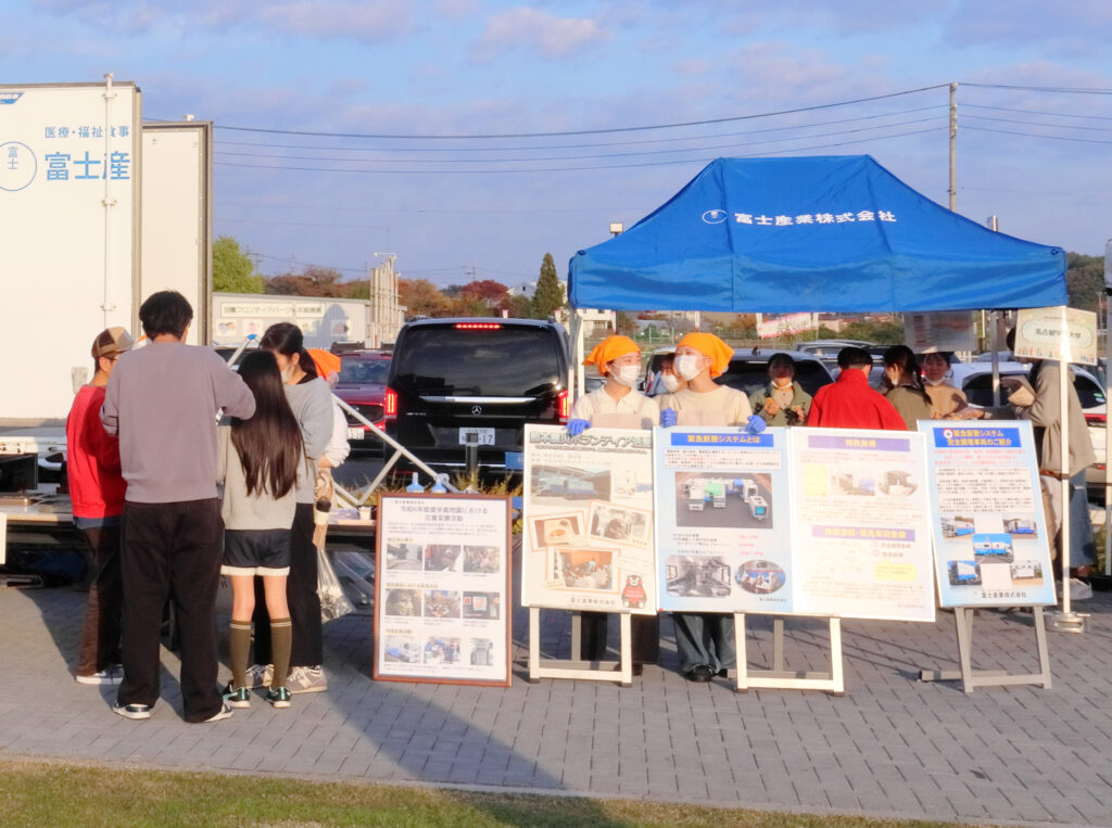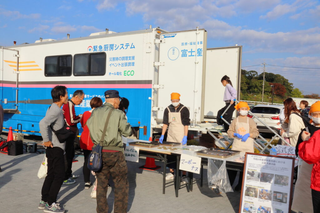 11月8日に、道の駅 マチテラス日進で開催された「みんなの防災安全フェスタ」において、名古屋学芸大学との産学連携プロジェクトとして、キッチンカーの展示を行いました。